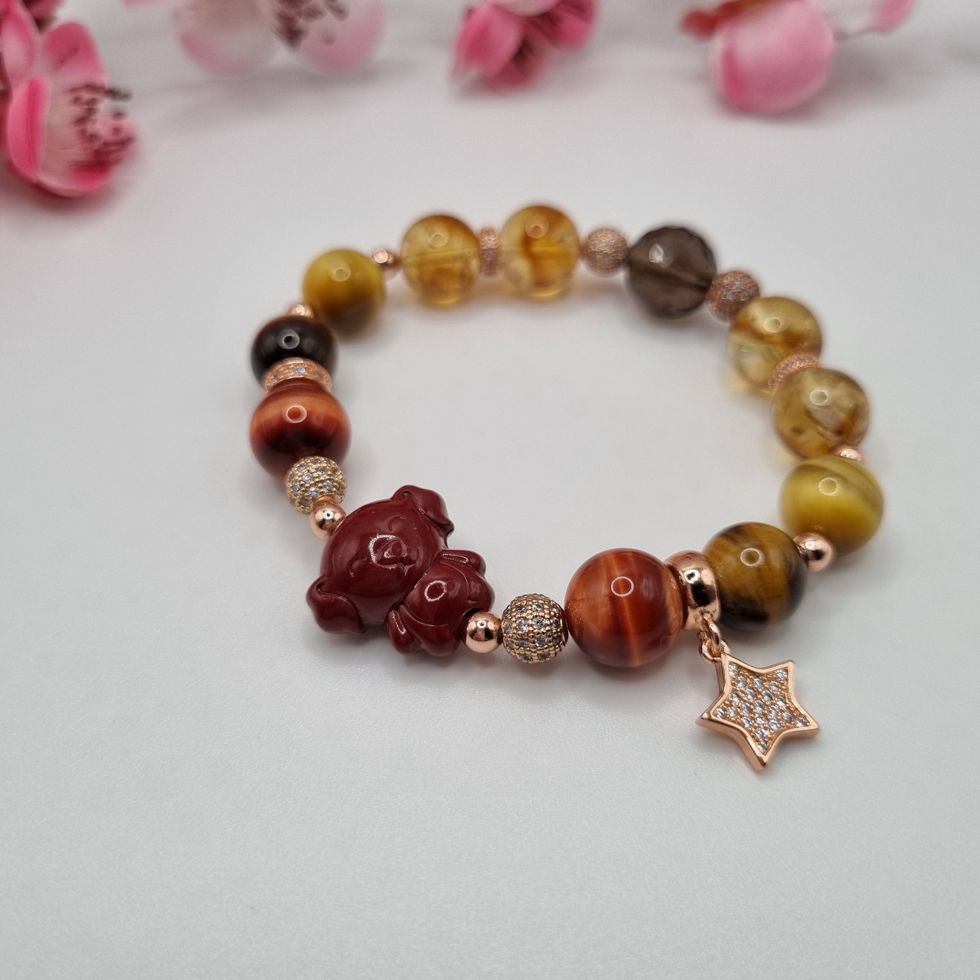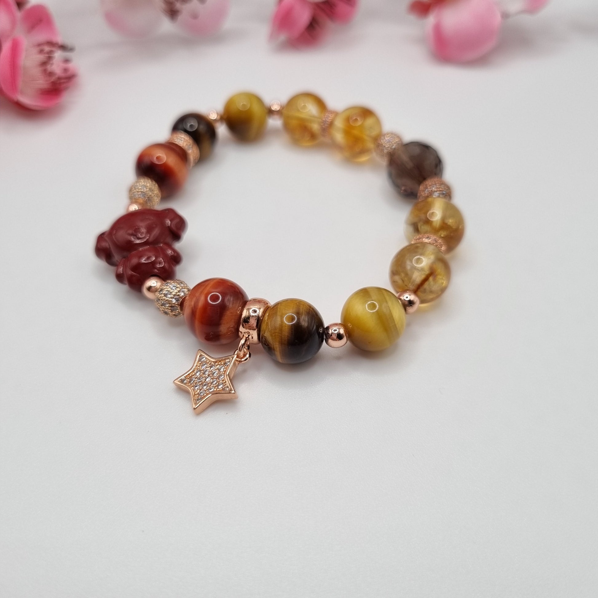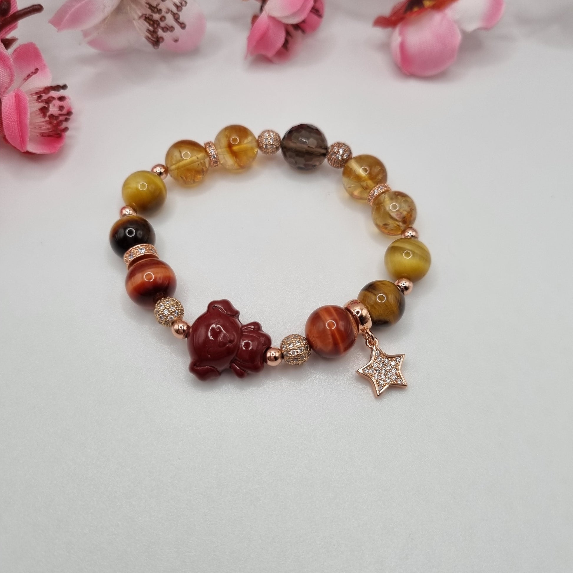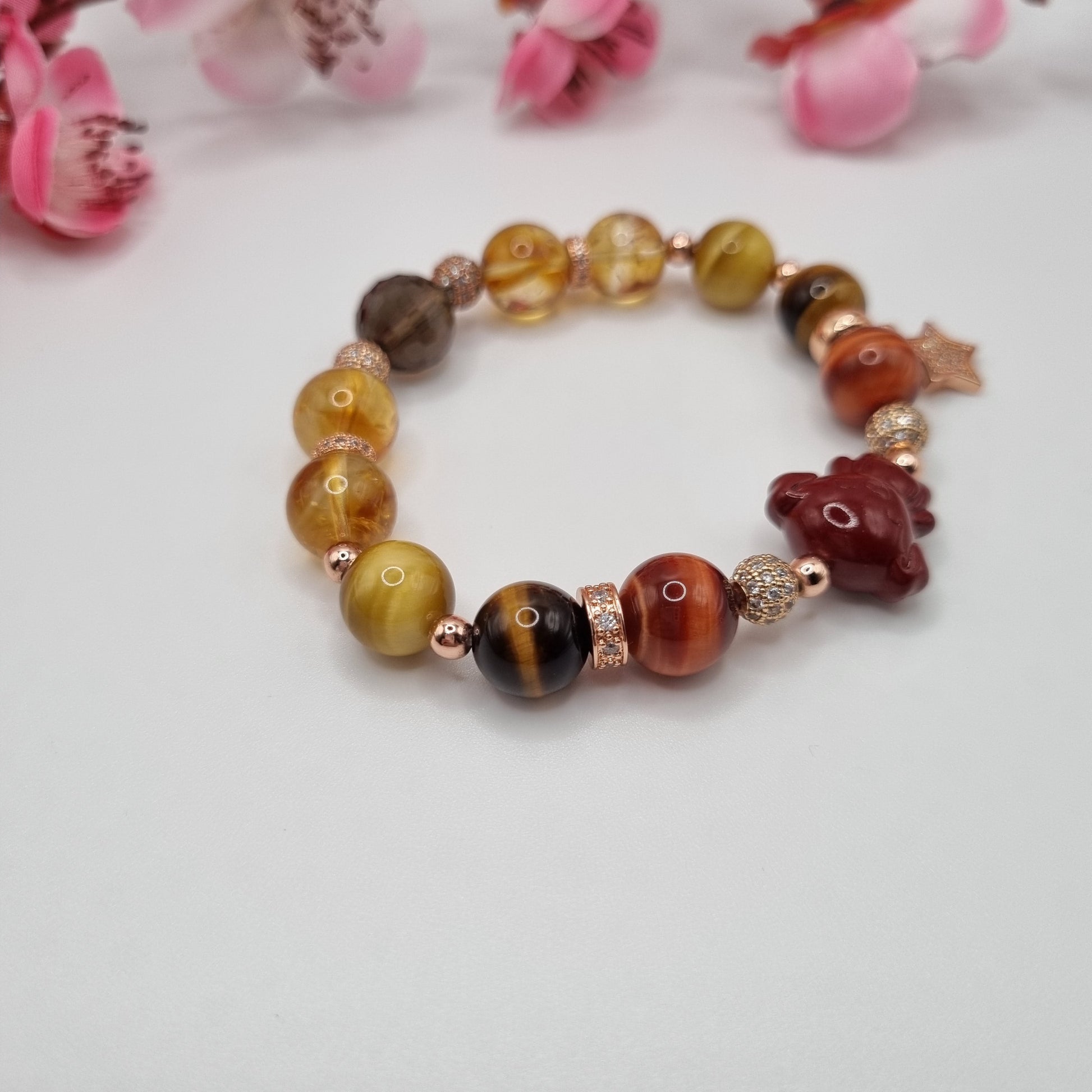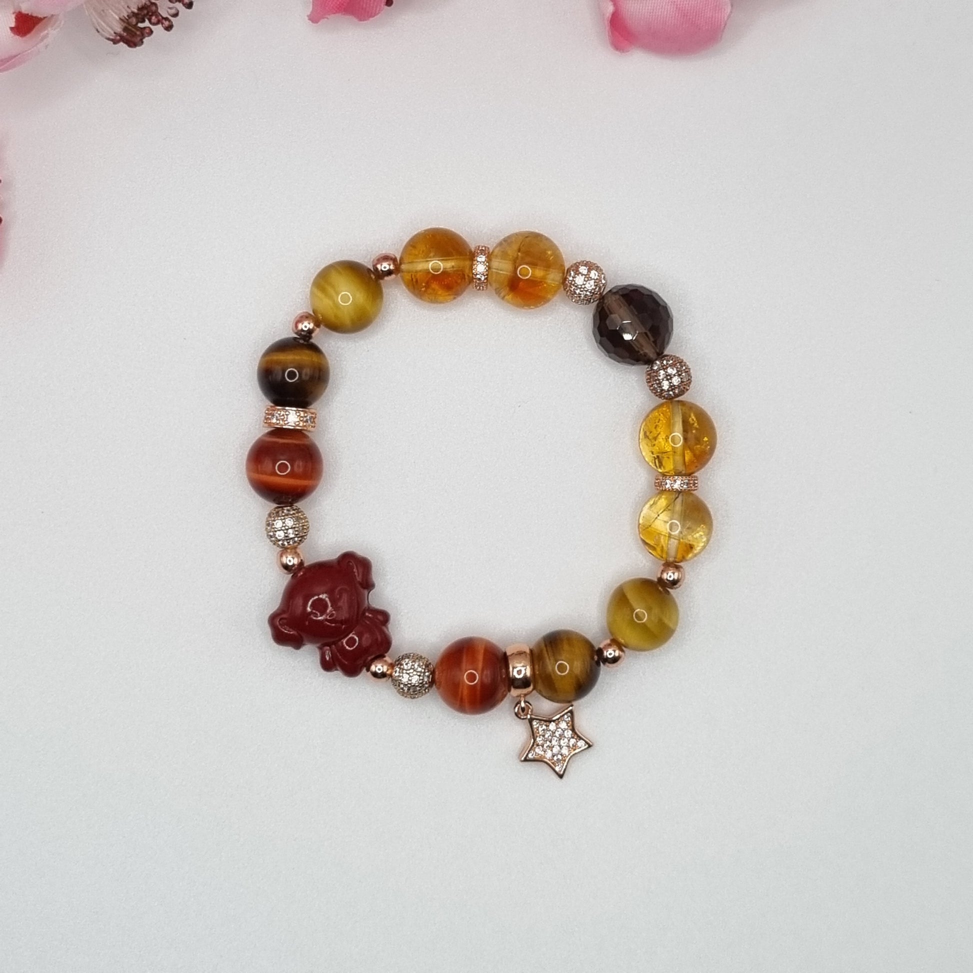 Crystals: Cinnabar (Dog), Red Tiger Eye, Yellow Tiger, Gold Tiger Eye, Citrine, Smokey Quartz