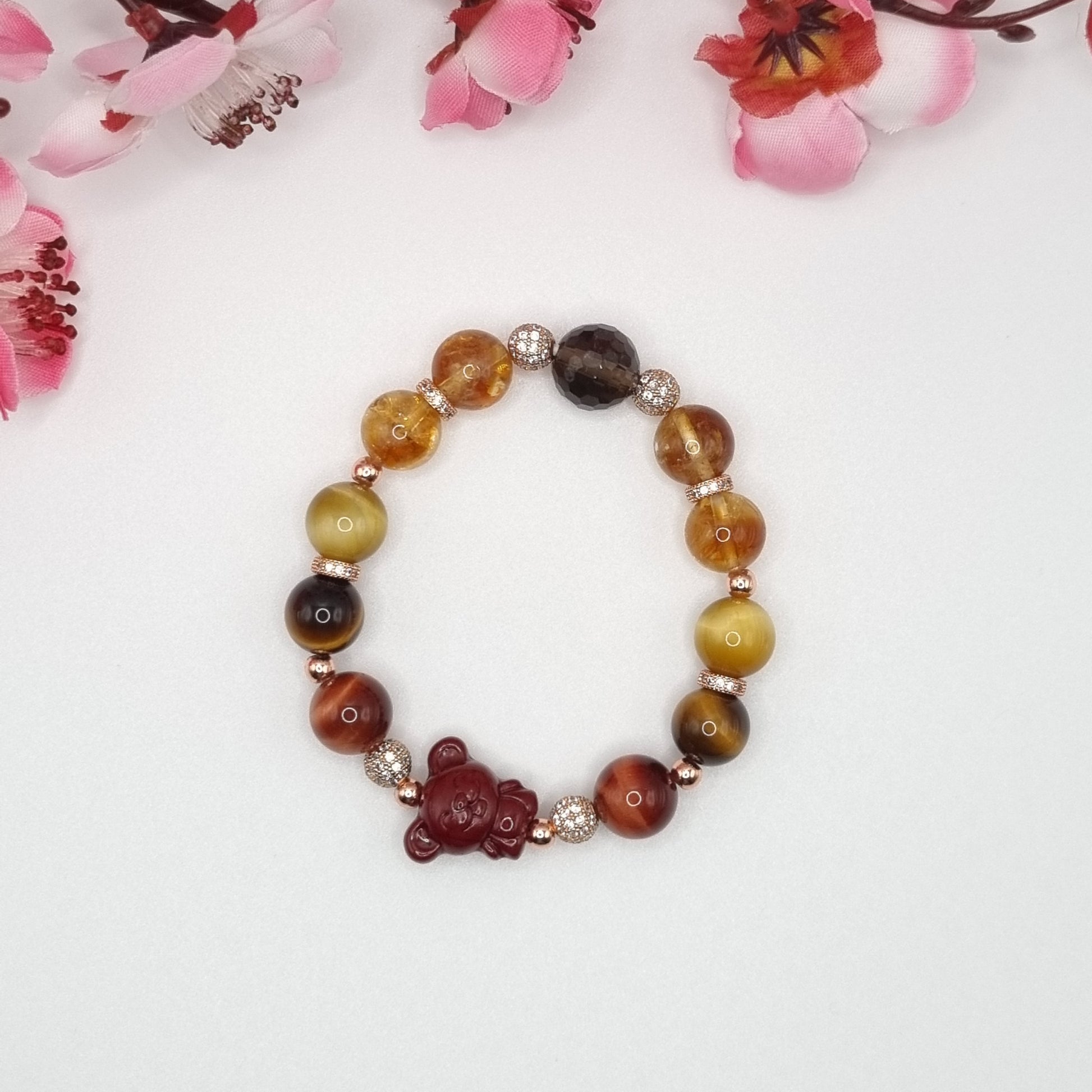 Crystals: Cinnabar (Rat), Red Tiger Eye, Yellow Tiger, Gold Tiger Eye, Citrine, Smokey Quartz