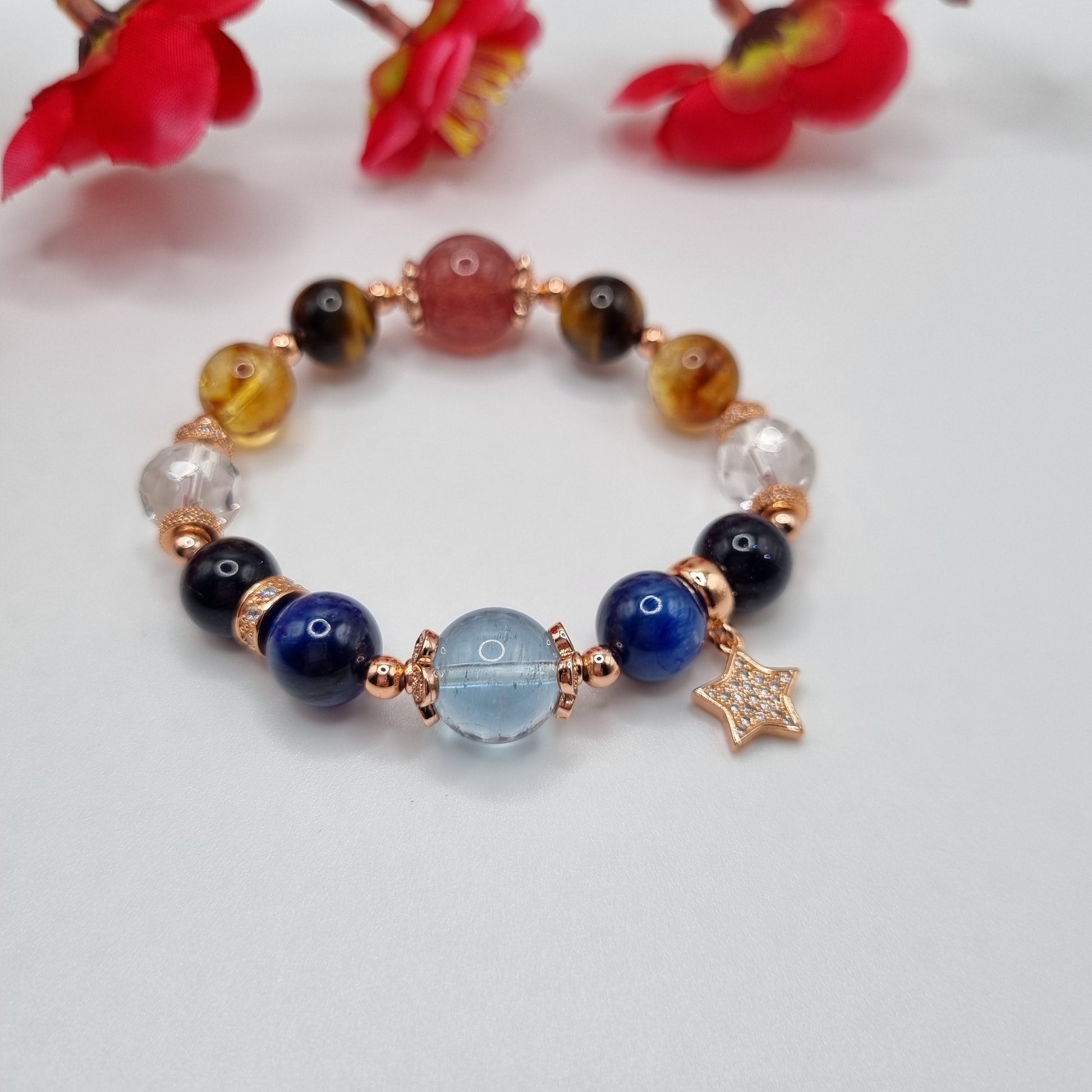 Crystals: Aquamarine (Premium), Strawberry Quartz, Kyanite, Yellow Tiger Eye, Blue Sandstone, Citrine and Clear Quartz