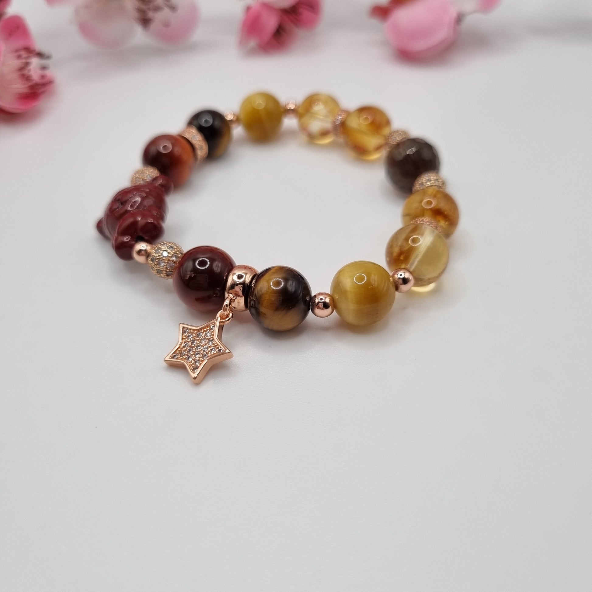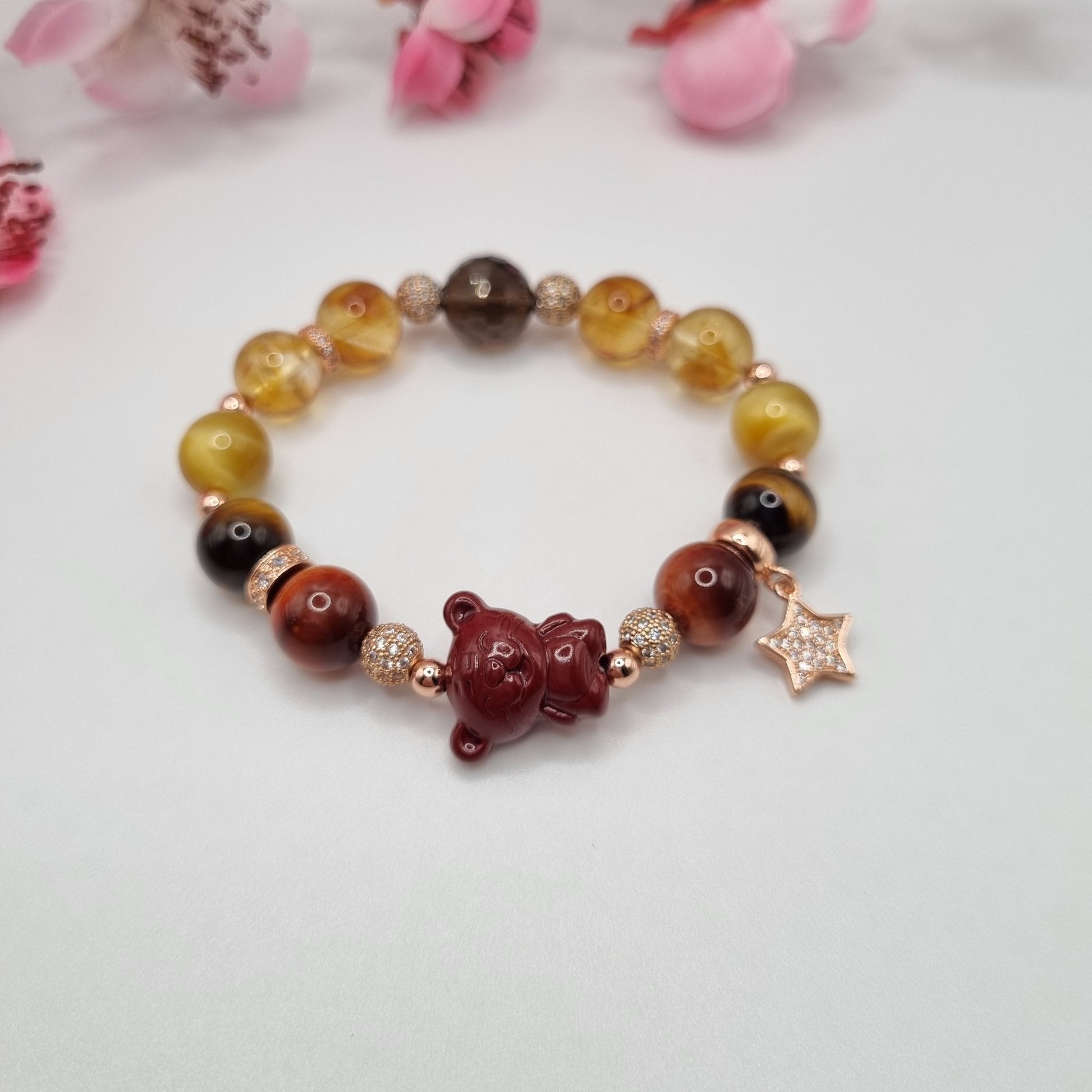 Crystals: Cinnabar (Tiger), Red Tiger Eye, Yellow Tiger, Gold Tiger Eye, Citrine, Smokey Quartz